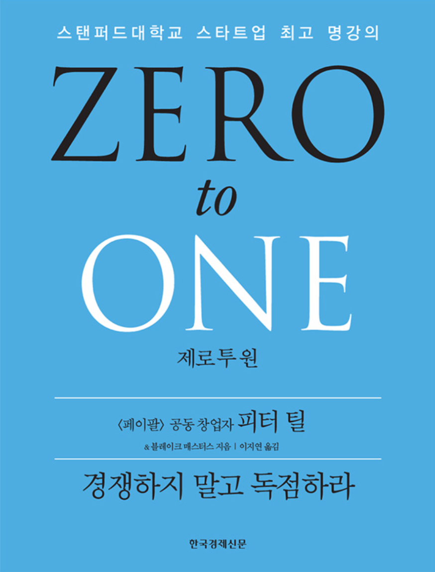 그런데 제로 투 원은 세상에 존재 하지 않던 제품 혹은 서비스를 새롭게 만들거나 기존의 것들을 완전히 압도하는 것이다.